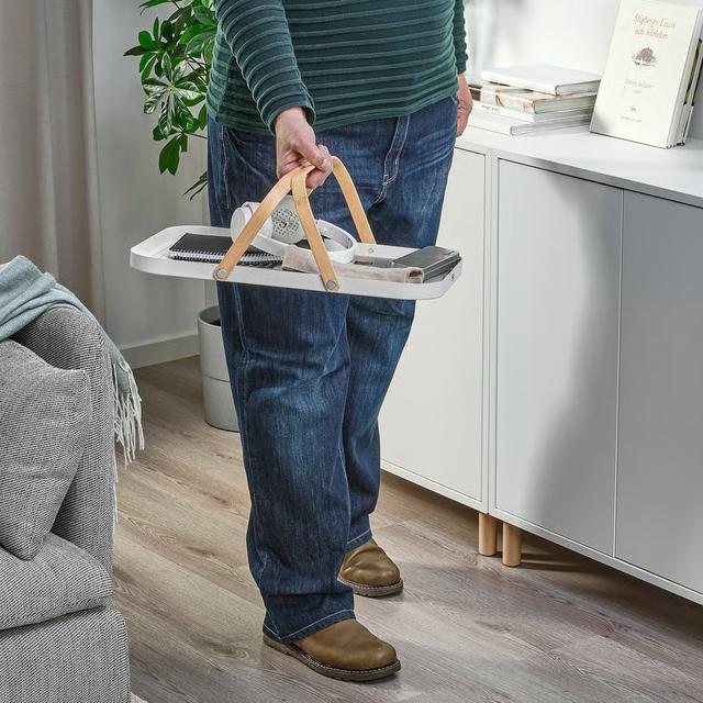 Багатофункціональний піднос GRONFISK ідеально підходить для сервірування напоїв, снеків, сніданків у ліжко або як компактний столик під час перегляду фільмів. Завдяки бортикам і зручним ручкам його легко переносити з кімнати в кімнату чи брати із собою на пікнік.