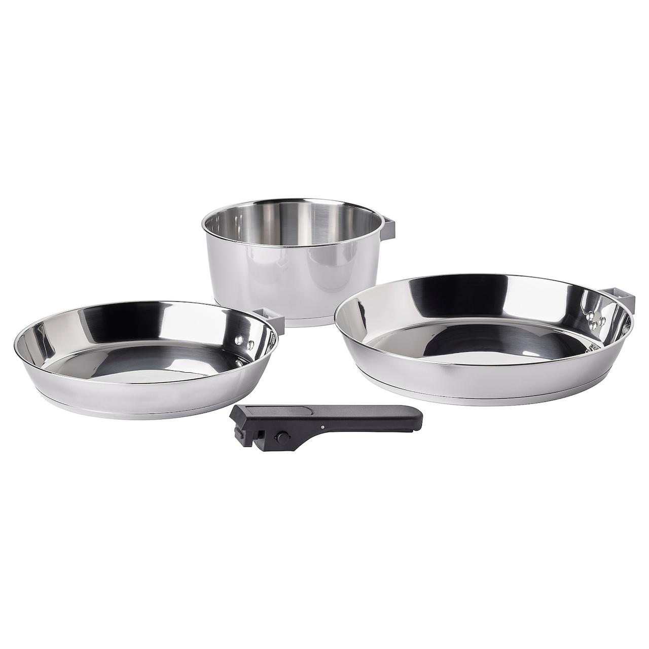 Ви можете легко зняти ручку та встановити її знову за допомогою двох кнопок з боків. Ручку можна зняти та помістити в найменшу з каструль, щоб ви могли легко зберігати їх у шафі чи ящику, складаючи каструлі. Це економить місце на плиті, оскільки ручка встановлюється лише тоді, коли це необхідно. Після зняття ручки каструлі можна безпечно використовувати в духовці. Від’єднайте ручку, якщо хочете заощадити місце в посудомийній машині. Під час приготування їжі можна використовувати різноманітний посуд , включаючи металевий посуд. Високоякісна нержавіюча сталь і міцне металеве внутрішнє покриття роблять каструлі дуже міцними та придатними для щоденного використання. Шар алюмінію між двома шарами нержавіючої сталі забезпечує рівномірний розподіл тепла. Каструля має округлу внутрішню частину. , що полегшує перемішування та збивання.Дизайнер Henrik Preutz Корисно знати Набір включає: 1 каструлю (2 л), 1 сковорідку (діаметр 24 см), 1 сковорідку (діаметр 28 см) і 1 знімну ручку.Для прикріплення ручки, натисніть кнопки, щоб відкрити ручку. Прикріпіть ручку до каструлі, посуньте її вперед і закрийте. Щоб відкріпити ручку, натисніть дві кнопки з боків, потягніть ручку назад і підніміть її. Вимийте виріб перед першим використанням. Матеріали та технічне обслуговування зерна матеріалу: нержавіюча сталь, нержавіюча сталь, нержавіюча сталь/ вісь: нержавіюча сталь: алюмінієва рибка/ кнопка відкривачки/ закривання: феноловий пластиковий газ. Можна використовувати на індукційній плиті. Можна використовувати на склокерамічній плиті. використовувати на чавунній плиті. Безпека та відповідність